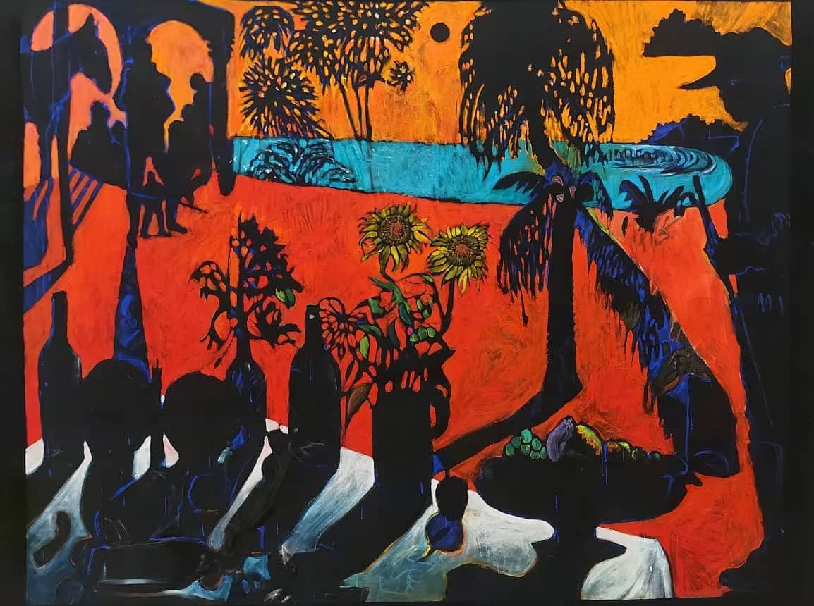 Las piezas de la exposición Blue as Velvet (Azul como el terciopelo) pueden considerarse como variaciones de un trabajo más general iniciado en 2020 bajo el nombre (en)Trópicos. El título hace referencia originalmente a Claude Lévi Strauss y a su libro más novelesco Tristes Trópicos, en el que el autor lamentaba la desaparición de la naturaleza colonizada por el hombre, hace casi un siglo. Lo que todos los cuadros tienen en común es reflejar esa misma idea romántica o la nostalgia de una naturaleza primaria prístina que luego fue domesticada por el hombre. El resultado son paisajes inventados, bodegones imaginarios, bosques o selvas encapsuladas como muestras de la naturaleza, donde casi siempre brota un misterio o una fantasía. Cada observador de las pinturas tendrá la libertad de encontrar sus explicaciones íntimas a cada dibujo.